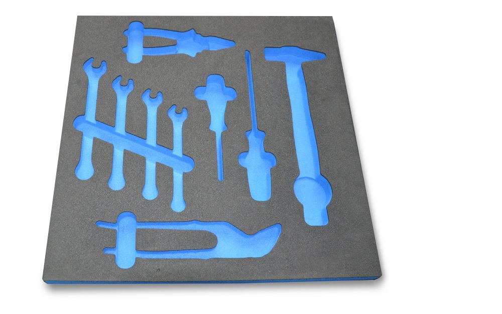 Werkzeugeinlage (Shadowboard) aus Schaumstoff, gefräst mit der BZT CNC Portalfräsmaschine PFH 2520-G (Dreifach-Fertigung)