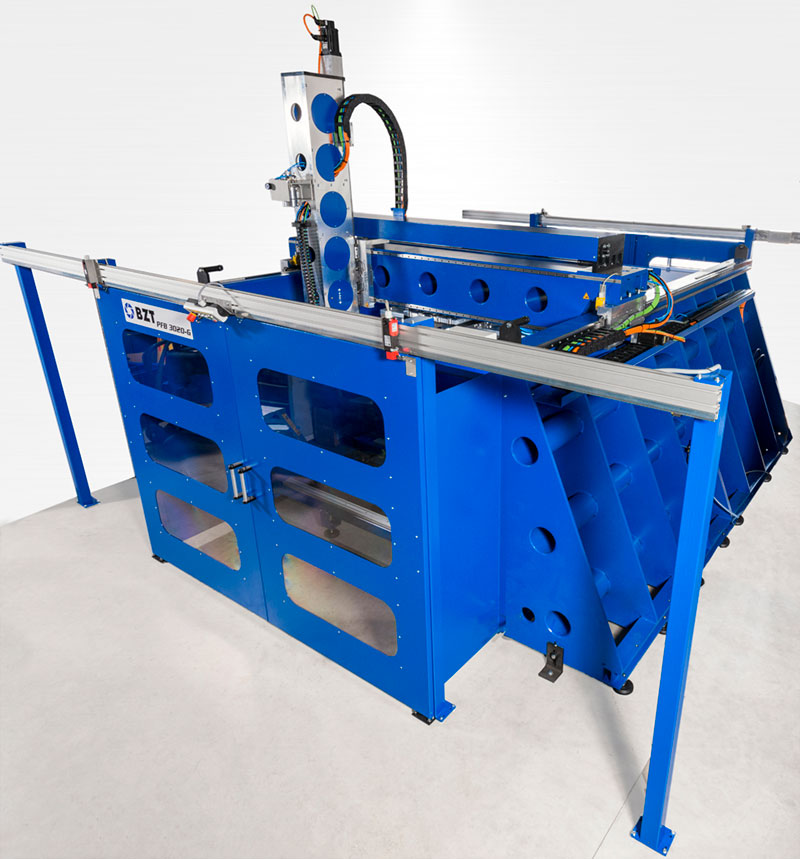 - Der freie Innenraum der Maschine kann mit BZT Sonderspanntischen oder mit eigenen Spannsystemen belegt werden.