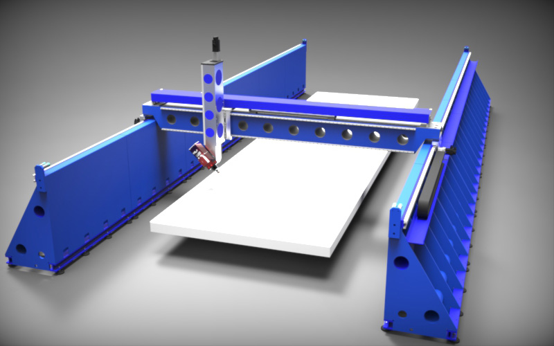 Die in den X – und Z – Achsen verbauten großen Linearführungen von Bosch, die Kugelrollspindeln und die geschliffenen Präzisionszahnstangen sorgen für präzise Fräsergebnisse. Die robuste Stahlkonstruktion sorgt für schwingungsarmes Arbeiten auch bei hohen Geschwindigkeiten.
